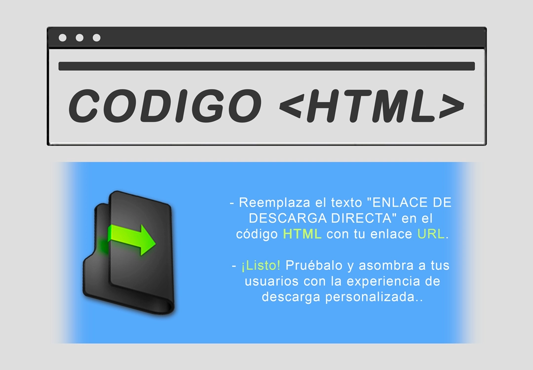 - Reemplacen el texto "ENLACE DE DESCARGA DIRECTA" en el código HTML por el enlace URL que deseen.